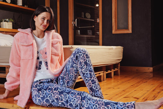 بيجامة 3 قطع بنطلون وتيشرت قطيفة جاكيت بولار