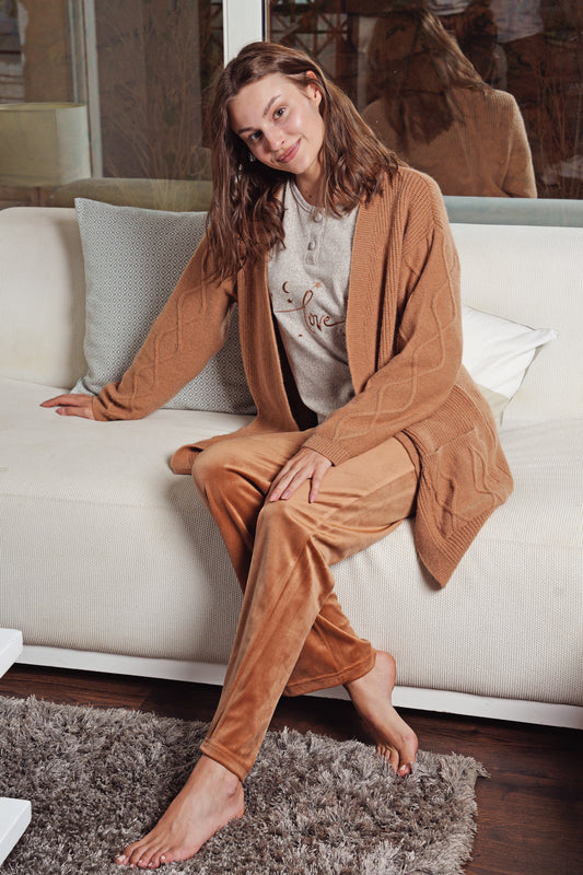 بيجامة 3قطع جاكيت تريكو بنطلون قطيفة