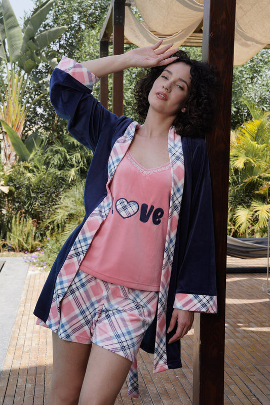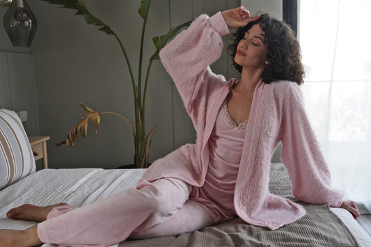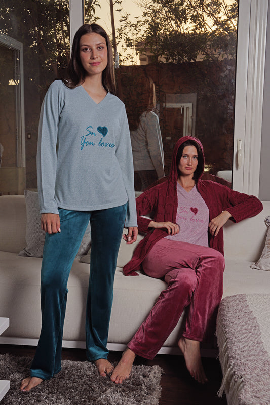 بيجامة 3قطع جاكيت تريكو بنطلون قطيفة ناعم