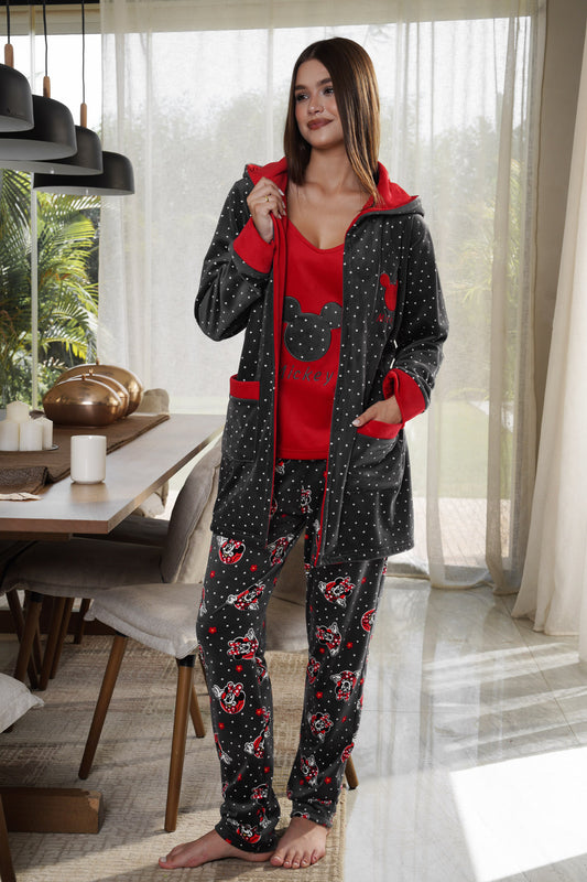 بيجامة 3قطع قطيفة ناعم جاكيت فرو